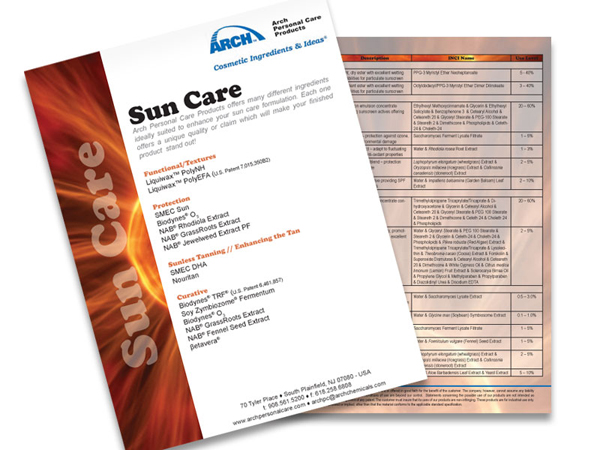 This functional sales aide for Arch Personal Care Products was designed to highlight certain ingredients and compatible formulations. We managed to make it both attractive and informative, while also productive for their sales efforts.